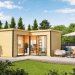 Son toit plat élégant, recouvert d’un feutre bitumeux inclus et compatible avec une onduline en option, accentue son allure moderne et architecturale. Les finitions anthracite en aluminium des portes et fenêtres contrastent subtilement avec la teinte claire du bois pour un rendu contemporain et harmonieux.