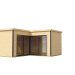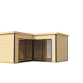 Fabriqué en bois clair d’épicéa du nord, il conserve le charme du bois naturel tout en adoptant une silhouette contemporaine. Sa structure en bois massif et son design en angle permettent d’optimiser l’espace avec style. Véritable abri de jardin esthétique, il combine modernité, confort et robustesse pour créer un abri extérieur de 17 m² aussi pratique qu’élégant.