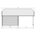 Les dimensions extérieures de l’abri sont de 2980 x 2980 x 2654 mm, avec une surface au sol de 8,88 m² et une surface hors tout de 20,10 m². Sa structure robuste repose sur une dalle béton de 2800 x 5544 mm, essentielle pour garantir la stabilité et assurer une longue durée de vie. D’un poids d’environ 1080 kg, cet abri de jardin avec auvent est conçu pour résister aux années et aux éléments.
