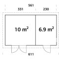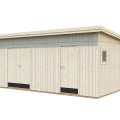 Avec ses 16,9 m² de surface utile, le modèle Kalle s’impose comme un abri extérieur bois brut stable et durable, pensé pour simplifier l’organisation du jardin. Ses deux compartiments séparés, accessibles par une double porte et une porte simple, en font une cabane bois massif double compartiment idéale pour ranger outils, vélos ou mobilier de saison.