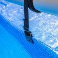 Pour une manipulation confortable, cet enrouleur de bâche pour piscine est doté d'un volant ergonomique avec une poignée pivotante, facilitant ainsi la mise en place et le rangement de la bâche. Un kit complet pour fixer la bâche est inclus, assurant une installation sûre et sécurisée.