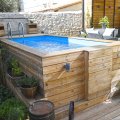 5 /5Jolie piscine en bois qui ne fait pas tache dans le jardin, installation rapide