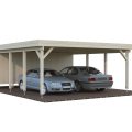 Idéal pour deux voitures, il allie esthétisme et fonctionnalité avec son toit plat moderne en bois massif, prêt à recevoir une couverture adaptée. Grâce à son format généreux et ses lignes épurées, il convient aussi bien aux maisons contemporaines qu’aux extérieurs plus naturels.