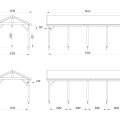 La structure repose sur 10 poteaux solides en lamellé collé de 120 x 120 mm, garantissant stabilité et résistance au fil des saisons. Ce carport pour véhicules bois allie esthétique et robustesse, avec un volume total de 57,1 m³ et une superficie de toit de 29,8 m², pensée pour une protection efficace contre les intempéries.