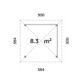 Avec ses poteaux massifs de 120 x 120 mm en lamellé-collé, cette tonnelle en bois avec poteaux 120x120 séduit par sa robustesse et sa durabilité. Le toit pyramidal de 17,6 m² en voliges de bois massif repose sur une charpente bien dimensionnée, avec une pente de 30° pour une bonne évacuation des eaux. La hauteur libre sous la structure de 210 cm permet de circuler confortablement, tandis que la hauteur totale de 319 cm, combinée à une avancée de 42 cm, renforce la sensation d’espace. Le tout repose sur une base stable de 615 kg, avec une couverture en option à ajouter selon vos préférences.