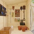 Fabriqué en bois brut non traité, ce modèle Leif est à traiter avant montage. Sa conception en lames de toit de 16 mm et panneaux préfabriqués assure un montage rapide et accessible. L’ouverture se fait par une porte de 102x182 cm, suffisamment large pour manipuler facilement objets volumineux ou brouettes.
