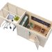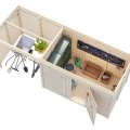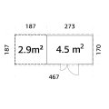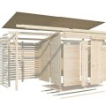 La structure, en bois massif non traité, est livrée en panneaux préfabriqués de 16 mm d'épaisseur pour un montage simple et rapide. La toiture en pente simple reçoit des lames de 16 mm et peut être complétée avec les accessoires suivants (en option) : 2 rouleaux de feutre de toit noir, 2 rouleaux de SBS, une bâche EPDM, ainsi que des clous pour la fixation.