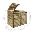 Avec des dimensions généreuses de 1456 mm de largeur, 1200 mm de hauteur et 920 mm de profondeur, ces doubles caches conteneurs poubelles assurent une capacité idéale tout en restant compacts pour s’intégrer harmonieusement dans votre jardin. Pesant 85 kg, ils offrent une stabilité remarquable, même par mauvais temps. La porte frontale et le couvercle facilitent l’accès au quotidien, rendant l’utilisation fluide et pratique.