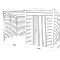 Abri de jardin en bois 179A | 4,6 à 5,3 m² | Bûcher 3,6 m² | Aspect brut | 28 mm d'épaisseur