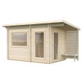 Maison de jardin avec sauna intégré 3 places, SANNA | 480 x 320 cm | Bois brut | 44 mm d'épaisseur