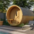 Kit sauna tonneau 4 personnes ANITA | 220 x 250 | Bois brut | 42 mm d'épaisseur