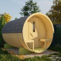 Sauna d'extérieur Tonneau en Épicéa Thermowood | 6 places | Poêle au choix | Ø205 x 300