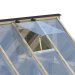 Côté lumière, cette serre vitrée bois massif traité a tout bon. Les parois et la toiture sont composées de verre trempé feuilleté, plus résistant et plus sécurisant qu’un vitrage classique, tout en laissant passer la lumière nécessaire à la croissance des plantes. Une fenêtre de toit équipée d’un système d’ouverture automatique vient compléter l’ensemble : elle s’ouvre et se ferme seule en fonction de la température intérieure, pour un climat toujours bien équilibré.