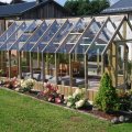 Serre de jardin en verre EMILIA | 240 x 363 | Bois traité autoclave gris | 18 mm d'épaisseur