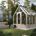 Avec son design épuré, cette serre de jardin verre et bois traité trouve parfaitement sa place sur une grande terrasse ou dans un jardin paysager. Sa structure en bois massif traité autoclave, son vitrage soigné et ses finitions pratiques en font une serre 240 x 363 en bois aussi robuste qu’esthétique. Un choix parfait pour ceux qui recherchent une serre potagère 8m² en verre trempé, fonctionnelle, durable et bien pensée jusque dans les moindres détails.