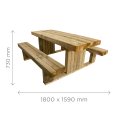 Table de pique nique en bois traité 6 places | 180 x 160 x 74 cm | Bois autoclave