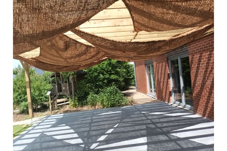 Fabriquée en fibres naturelles de coco, cette toile filtre la lumière de manière douce tout en laissant l’air circuler, créant un espace ombragé agréable lors des journées ensoleillées. Sa texture brute et sa teinte naturelle s’intègrent harmonieusement dans un jardin, une terrasse bois ou un espace extérieur végétalisé. Robuste, elle résiste bien aux conditions climatiques grâce à la qualité de ses fibres sélectionnées pour leur longévité.